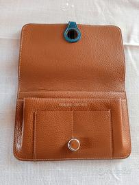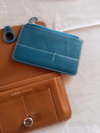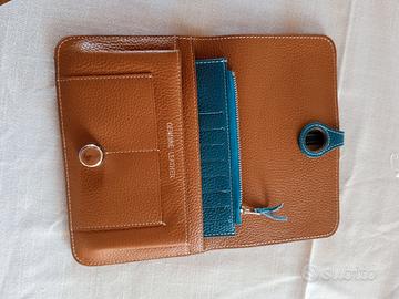 Usato 2 volte , vendo portafoglio lungo copia esatta del modello Hermes Dogon GM . Realizzato in vera pelle Togo ( La pelle Togo è pelle di vitello martellata, testurizzata e antigraffio. Togo è leggero, ma mantiene la sua forma. Togo ha una finitura morbida e sassosa definita che appare in rilievo e si sente liscia ma granulosa) in una ricca combinazione di 2 colori marrone e azzurro. Misura 12 cm x 19,5 cm x 1,5 cm, questo portafoglio pieghevole è progettato per uomini e donne, ottimo da usare anche come borsello, vendo senza scatola.