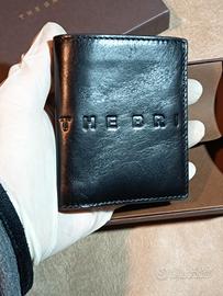 portafoglio The Bridge in pelle nera in perfette condizioni è come nuovo usato due volte è piccolo e compatto ha scomparti per carte di credito e banconote venduto con scatola originale.