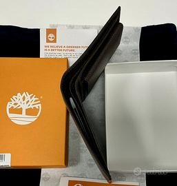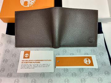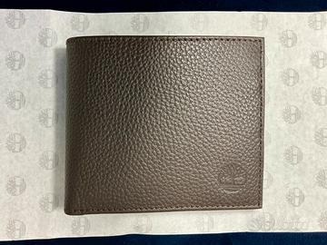 Portafoglio originale Timberland in vera pelle martellata, color testa di moro (dark brown), mai utilizzato, completo di confezione originale ed etichette.