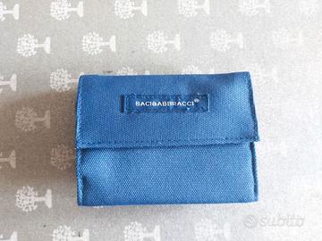 portafoglio in tela e brillantini Baci & Abbracci, colore azzurro cm.12,5x9,5 numerosi scomparti, nuovo mai usato