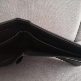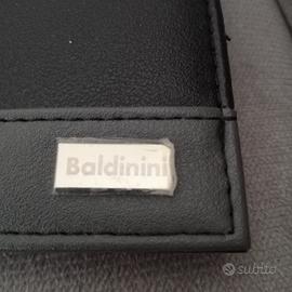 Portafoglio uomo marca Baldinini, in pelle, colore nero con fascia di colore grigio. Ha 6 scomparti per carte e 2 scomparti per banconote. Nuovo ma purtroppo senza scatola.