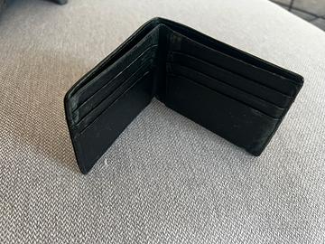 Misure da aperto: 22,5 cm x 9 cm. Colore: nero. Tessuto e pelle