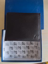 portafoglio marca kway uomo pelle scuro, con scatola originale, nuovo mai utilizzato