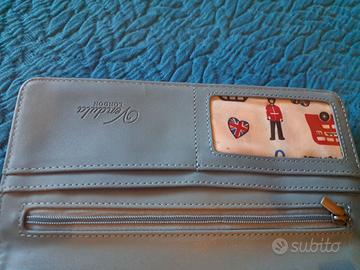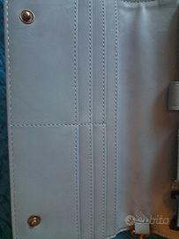 Portafoglio con numerosi scomparti. Usato pochissimo. Si può anche mettere al polso. Buonissime condizioni chiuso misura 21x11 Cm