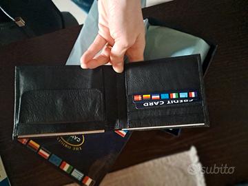 portafoglio in vera pelle color nero unisex nuovo mai usato ancora nella sua scatola originale