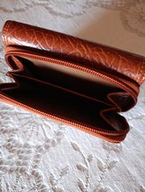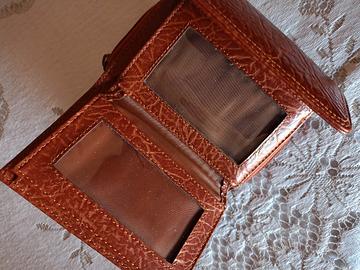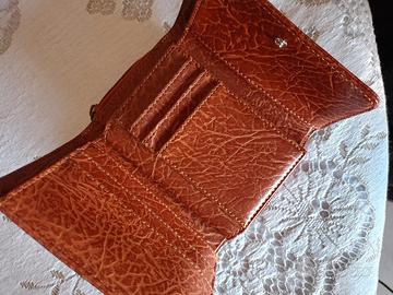 Color cuoio, portamonete a due scomparti, spazi per carte, tessere, banconote.Misure 10x9, senza difetti evidenti