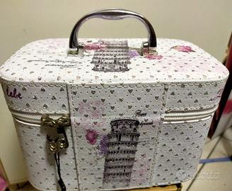 Portagioie con motivo viaggio, oggetto mai utilizzato con ancora etichetta come si evince dalle foto.