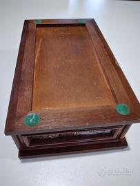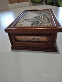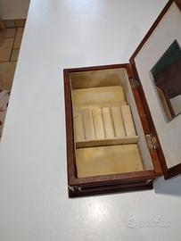 portagioie in legno e tessuto sul coperchio e ai lati .all'interno uno specchio. vintage