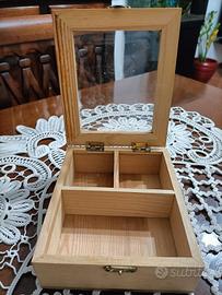 Elegante portagioie con struttura in legno e coperchio in vetro. - Design a scomparti interni. - Chiusura a scatto metallica. - Misure in foto