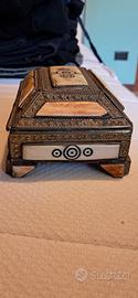 Si tratta di un portagioie berbero marocchino d'epoca, in osso di cammello e metallo sbalzato. L'oggetto è dipinto a mano.