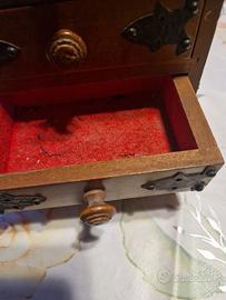 piccolo portagioie con 3 cassettini rivestiti in velluto dimensioni larghezza 17 cm altezza 19 cm profondità 10 cm
