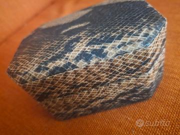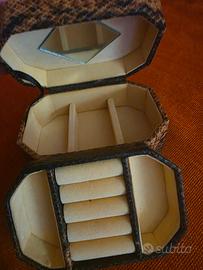 Elegantissimo portagioie con 3 scomparti e specchietto interno... per conservare comodamente anelli, bracciali, orecchini.... Stile pitonato color nocciola/marrone scuro. Nuovissimo mai utilizzato.