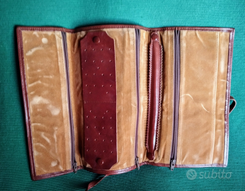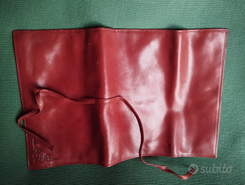 Morbida pelle marrone che consente di essere arrotolata. Aperto misura cm 34 x 22