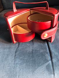Portagioielli da viaggio pelle colore birdeaux. Rotondo diametro cm 9. H cm8