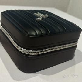 Scatola porta gioielli nera, elegante, con iniziale “M” decorata.