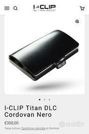 Vendo splendido portafoglio iclip in pelle cordovan nera e telaio in titanio anti graffio. Prezzo su sito iclip o amazon €300. Prezzo leggermente trattabile