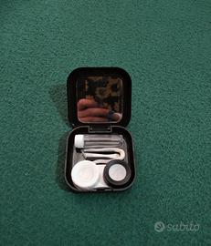 Portalenti da borsa con custodia per lenti, bottiglietta porta liquido , pinza e ventosa per lenti a contatto e specchio. Colore nero.