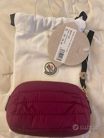Magnifico porta oggetti in nylon colore bordeaux nuovo mai usato Marchio di lusso Moncler. Firmato sul davanti, all'interno e sul cinturino. Presente l’etichetta originale