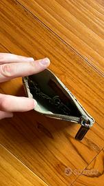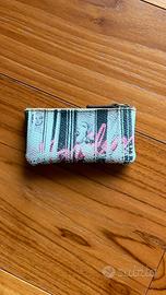 Portamonete firmato Bagghy dal design unico e super trendy • Fantasia grafica in bianco, nero e tocchi di rosa per uno stile originale • Formato compatto, perfetto da tenere in borsa o nello zaino • Chiusura con zip, pratico e sicuro • Condizioni buone: presenta piccoli segni di utilizzo che non compromettono l’uso ma aggiungono carattere