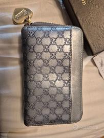 Portamonete piccolo con tre scomparti e portachiavi interno, in buone condizioni, un po' scolorito sotto. Originale