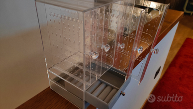 Espositore per orecchini e anelli, gioielli, espositore in plastica con cassettini di velluto per braccialetti, orologi, anelli