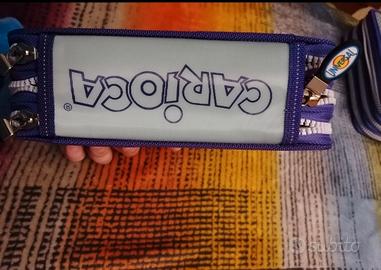 portapenne per bambino/a della Carioca, nuovo, mai utilizzato, tre scomparti con in più una retina sul retro dove poterci mettere altri oggetti. All'interno un piccolo block notes.