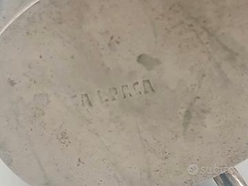 Realizzato in alpaca di prima qualità lavorata a specchio all'interno e al naturale all'esterno, con deliziosa chiusura a clip. Nessuna indicazione di provenienza, ma se ne garantisce la manifattura artigianale tipica dei maestri argentieri e intarsiatori del Messico.
