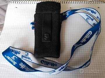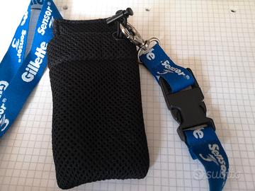 Set promozionale vintage Gillette Sensor composto da un cordino da collo con fibbia a sgancio rapido e moschettone e una custodia protettiva morbida ideale per proteggere piccoli dispositivi elettronici o accessori.