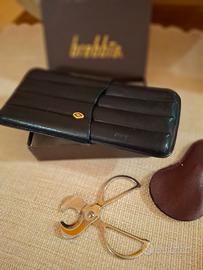 portasigari 4 ammezzati in pelle di vitello nera , come nuovo e tagliasigari con custodia