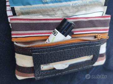 Caratterizzato da tasche separate per il pacchetto, i filtri e l'accendino.