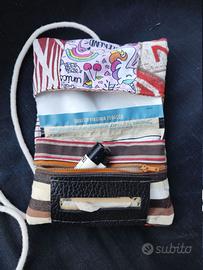 Portatabacco hippy interamente realizzato a mano con scampoli di tessuto riciclato.