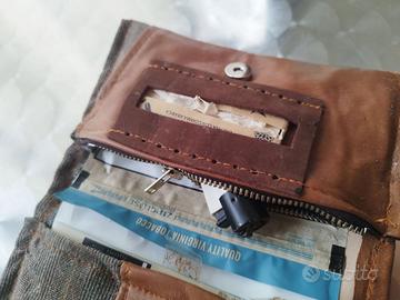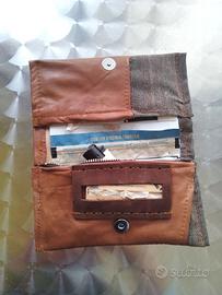 Come vedete dalle foto, al di sopra di questa tasca, c'è il porta cartine, mentre nella parte superiore del portatabacco, la stoffa ripiegata serve a tenere aperto il pacchetto di tabacco.