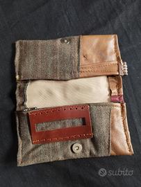 Come vedete dalle foto, al di sopra di questa tasca, c'è il porta cartine, mentre nella parte superiore del portatabacco, la pelle ripiegata serve a tenere aperto il pacchetto .