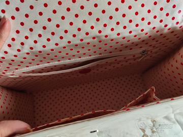 Misure 40*29*14 senza contare la maniglia superiore e il fiocco sul davanti.