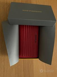 Portafoglio realizzato in morbida pelle di vitello martellata di origine italiana, Mellow Leather, che conferisce forme soffici e destrutturate. Colorre rosso, dimensioni 20x10. 4 tasche grandi, 8 scomparti porta carte/documenti. Mai usato e ancora con i cartellini interni.