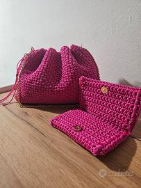Pouch bag fucsia in cordino Swan Black, lavorata a mano.