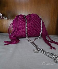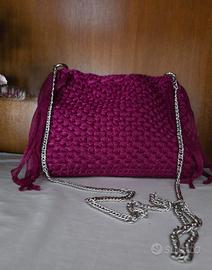 Borsa realizzata a mano in microfibra, morbida e leggera, con catena, 25×20