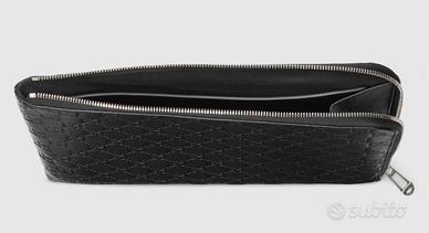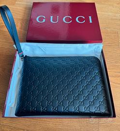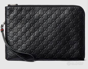Borsello originale Gucci Pouch GG Emblem misura media in pelle GG nera. La linea GG Emblem reinterpreta l'eleganza e la maestria artigianale che hanno caratterizzato la storia della Maison con articoli realizzati in pelle liscia con motivo GG in rilievo. Parte dell'ultima linea di piccoli accessori, questa pouch è realizzata in pelle con GG in rilievo. Codice prodotto Stile 850223 AAFOK 1053 Dettagli prodotto Pelle con GG in rilievo nera Fodera in cotone e lino nera Interno: 1 tasca aperta Cinturino da polso staccabile in pelle, altezza (luce) 17 cm Chiusura con zip L 30 cm x A 22 cm x P 2,5 cm Peso: circa 360 g Può contenere un iPad, un quaderno A4 e oggetti di piccole dimensioni. Acquistato in boutique a marzo 2026 e mai utilizzato. Scatola e documenti d’acquisto disponibili. Condizioni perfette, prezzo non trattabile.
