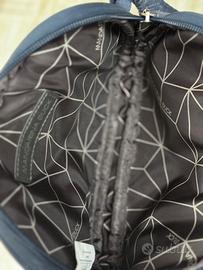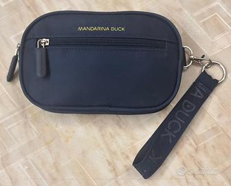 Dotata di chiusura con zip ,tasca frontale con zip e comodo cinturino da polso con moschettone e logo mandarina , ideale per portare con se