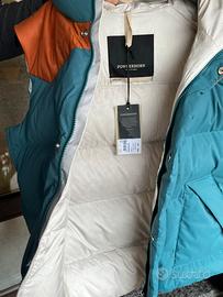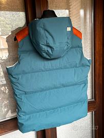 gilet Powderhorn modello Jackson, pezzo iconico del brand americano/svizzero facente parte del gruppo Dolomite/Scott Sports. L'articolo è nuovo, mai indossato e completo di cartellino originale (€ 379,90). Si tratta di un'edizione della linea Heritage nella rara variante colore Black Forest (verde bosco con spalle a contrasto in tonalità cuoio), attualmente fuori produzione e difficile da reperire in queste condizioni (Deadstock). Specifiche Tecniche e Materiali: • Imbottitura: Vera piuma d'oca rigenerata ad alta densità (90/10). Garantisce un isolamento termico superiore con un ingombro minimo. • Dettagli Premium: Carré (rinforzo spalle) realizzato in Vera Pelle bovina, elemento distintivo dei modelli d'archivio Powderhorn che ne garantisce la durata nel tempo. • Tessuto Esterno: Poliestere tecnico con trattamento idrorepellente (DWR), resistente a vento, pioggia e neve. • Costruzione: Chiusura doppia con zip rinforzata e patta con bottoni a pressione; cappuccio integrato e tasca interna di sicurezza. Note sulla rarità: A differenza delle versioni commerciali più recenti, questo modello mantiene gli standard costruttivi che hanno reso celebre il brand a Jackson Hole. Le finiture sono paragonabili a capi di alta gamma come quelli di Rocky Mountain Featherbed o alle linee d'élite di Patagonia, ma con un design più esclusivo e meno diffuso. Ideale per chi cerca un capo tecnico distintivo per la montagna o per un contesto urban-outdoor ricercato. Condizioni: 10/10 (Nuovo con etichetta). Taglia: M (Regular Fit). #powderhorn #dolomite #heritage #verapelle #piumadoca #jacksonhole #outdoorluxury #gorpcore #abbigliamentomontagna #smanicato #piumino #archivio #deadstock