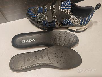 Scarpe sneakers Prada Originali. Usate 4 - 5 volte in perfette condizioni. Misura riportata 6 - calza abondante tipo 41 - 42. Misura soletta interna 26,9 centimetri. Misura suola 29,5 centimetri. Scarpe molto comode e di grande effetto dal vivo. Pagate 680 euro. Garantisco l'autenticità del prodotto. Whats 3299169579