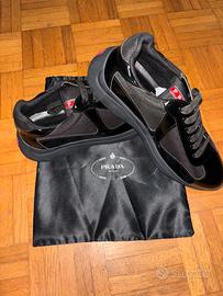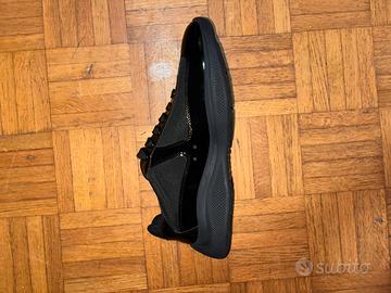 Sneakers Prada American's Cup in total black. - Tomaia in vernice e tessuto tecnico. - Suola in gomma. - Design iconico.