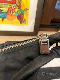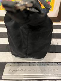 La borsa è realizzata in nylon, spesso descritto come "Re-Nylon" nelle versioni più recenti, un tessuto rigenerato che è leggero e resistente. Manico in pelle nera