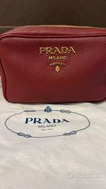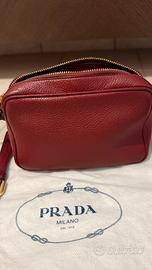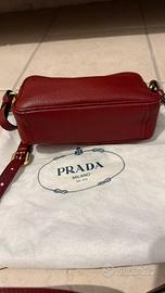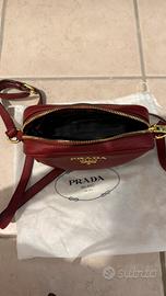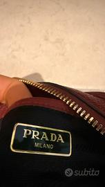 Bellissima borsa a tracolla Prada Milano in morbida pelle martellata rosso bordeaux, con dettagli metallici dorati.