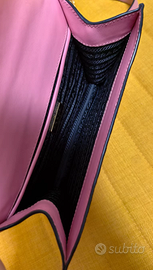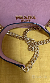 🌟 In vendita una borsa Prada in pelle Saffiano rosa, con tracolla a catena. Un modello femminile, compatto ed elegante, perfetto per ogni occasione! ✨
