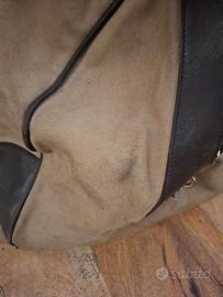 Rifinita con eleganti riporti in pelle di vitello semiopaca cerata e dettagli in metallo.