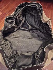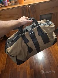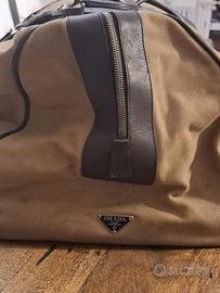 Splendida sacca da viaggio originale Prada, modello in tela di cotone trattata con resine sintetiche che la rendono resistente e impermeabile, con caratteristico effetto leggermente vissuto.