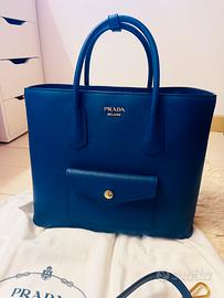 Vendo bellissima e nuovissima borsa da donna in pelle saffiano di PRADA modello front pocket Shopping Tote con tracolla, taschino frontale, all'interno altri taschini con zip, colore Bluette, Nuovissima mai stata utilizzata, con la sua dust bag e con ancora la sua borsa in cartone da negozio. Presenti i 2 certificati di autenticità. L44 H27 P17 ⭕️SCAMBIO A MANO NON SPEDISCO⭕️