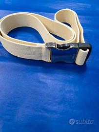 Cintura in cotone con fibbia in acciaio e plastica, regolabile.