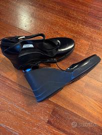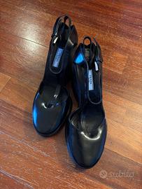 Prada Milano décolleté in vernice con chiusura a laccio e zeppa in gomma. Mai usate, ma senza etichetta e scatola originale. Taglia 40.